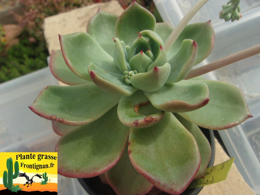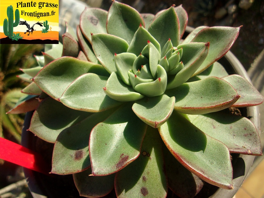 Echeveria 'Fleur de Trottoir' Petite plante aux feuilles marginées de sombre. En savoir plus... Culture et soins d'Echeveria 'Fleur de Trottoir' Exposition mi soleil; résistance au froid: -2°C; arrosage très modéré |