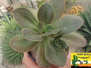 Echeveria 'Friponne' Plante pruineuse aux feuilles épaisses. En savoir plus... Culture et soins d'Echeveria 'Friponne' Exposition plein soleil, arrosage modéré à très modéré, résistance au froid: -2°C |