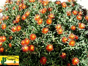 Delosperma floribundum: Delosperma floribundum est un ficoide rustique qui offre une belle floraison. En savoir plus... Culture et soins de Delosperma floribundum: Exposition plein soleil, résistance au froid: -15°C, arrosage inutile en pleine terre ou en gros pot. |