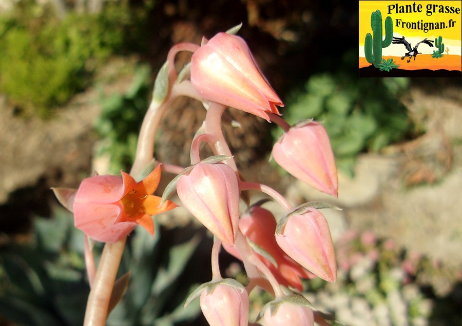 Fleur rose et orange d'Echeveria 'Anouchka'
