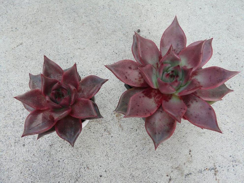 Echeveria agavoides 'Romeo' en croissance (le centre est verdâtre).